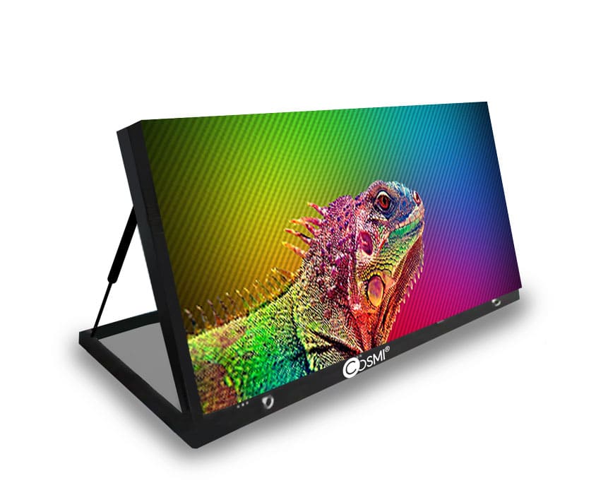 Pantalla led electrónica Full Color para exterior apertura delantera, alto brillo y bajo consumo, integrada en un sólido chasis de metal. Textos programables, animaciones 3D, videos, pantalla dividida, imágenes con transiciones por WINDOWS y