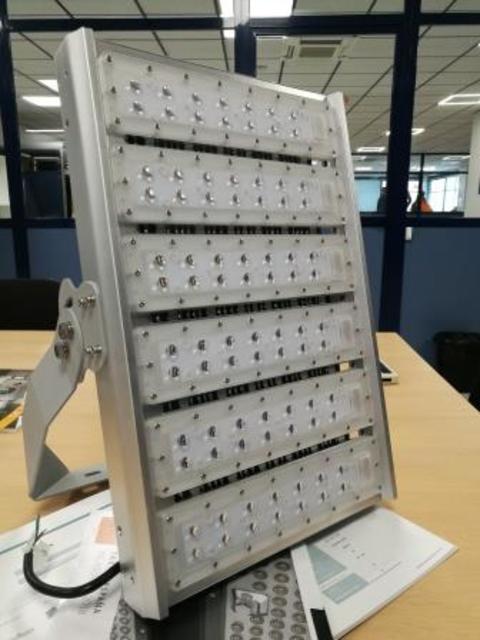 Foco led específico para pistas de pádel y tenis, gran emisión de lúmenes para cumplir con las normativas, excelente proceso de fabricación y montaje.