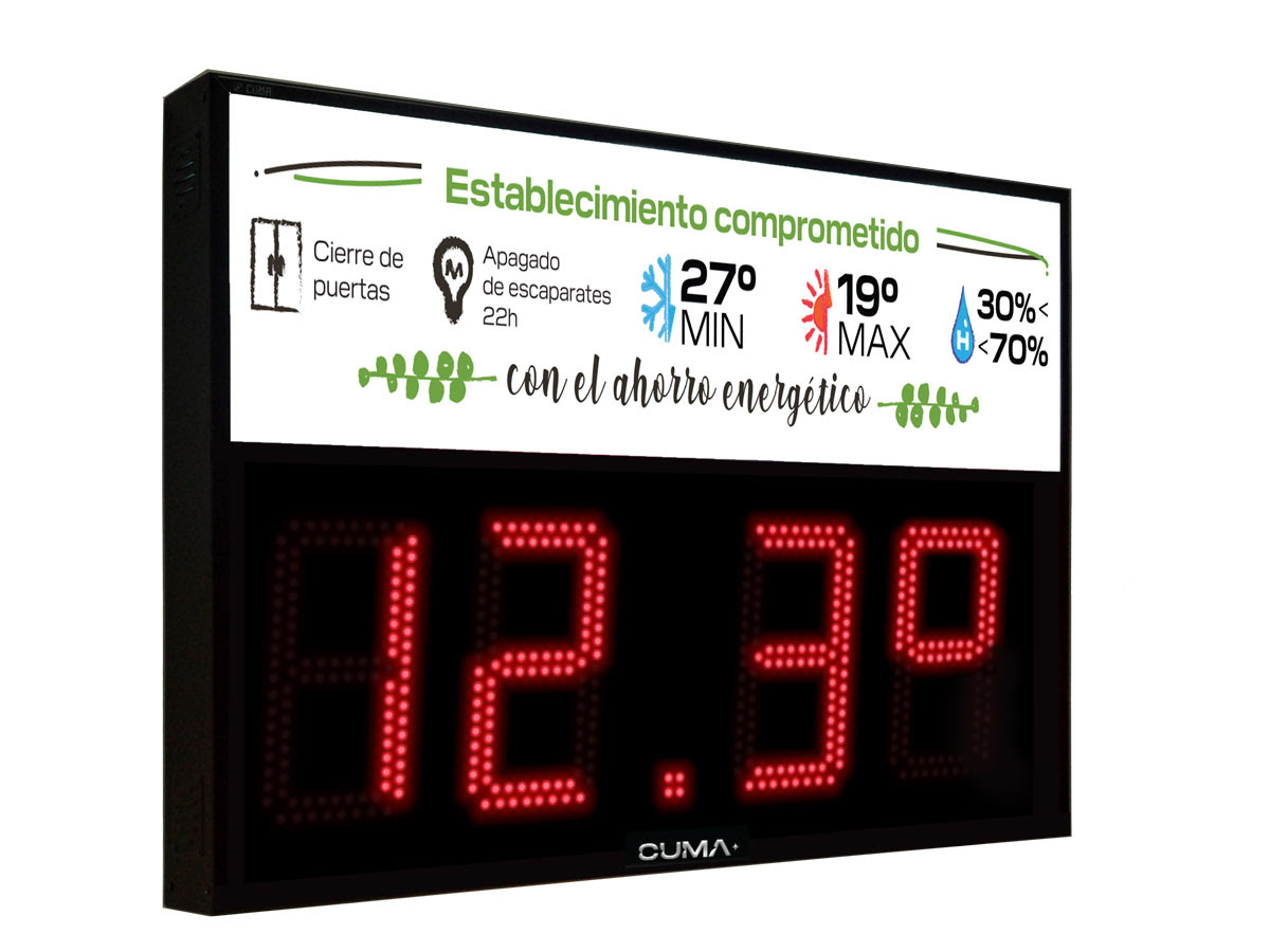 Reloj, temperatura y % de humedad con altura de dígito 20 cm